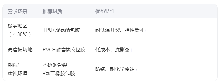 ?注意事項(xiàng)?:定期檢查包膠層磨損情況,避免硬物刮擦;低溫環(huán)境下需驗(yàn)證材質(zhì)的抗脆裂性。